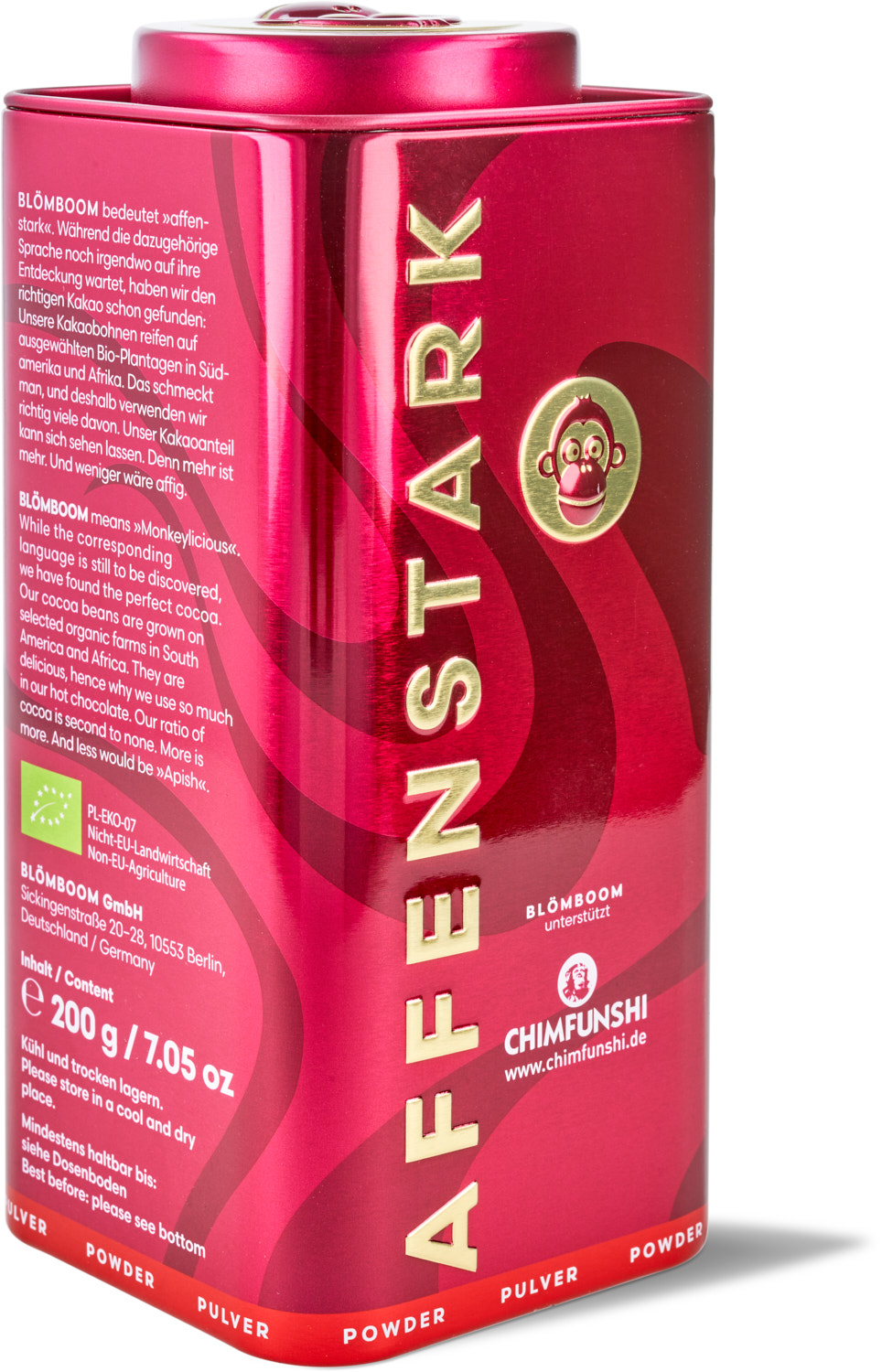 BLÖMBOOM bedeutet »affenstark«. Während die dazugehörige Sprache noch irgendwo auf ihre Entdeckung wartet, haben wir den richtigen Kakao schon gefunden: Unsere Kakaobohnen reifen auf Bio-Plantagen in Südamerika und Afrika. Das schmeckt man, und deshalb verwenden wir richtig viele davon. Unser Kakaoanteil kann sich sehen lassen. Denn mehr ist mehr. Und weniger wäre affig.
